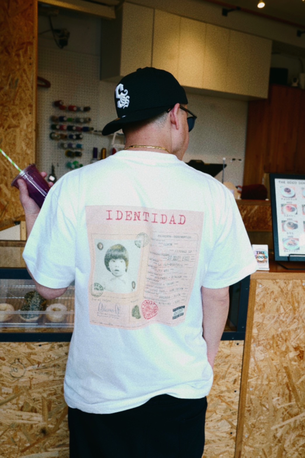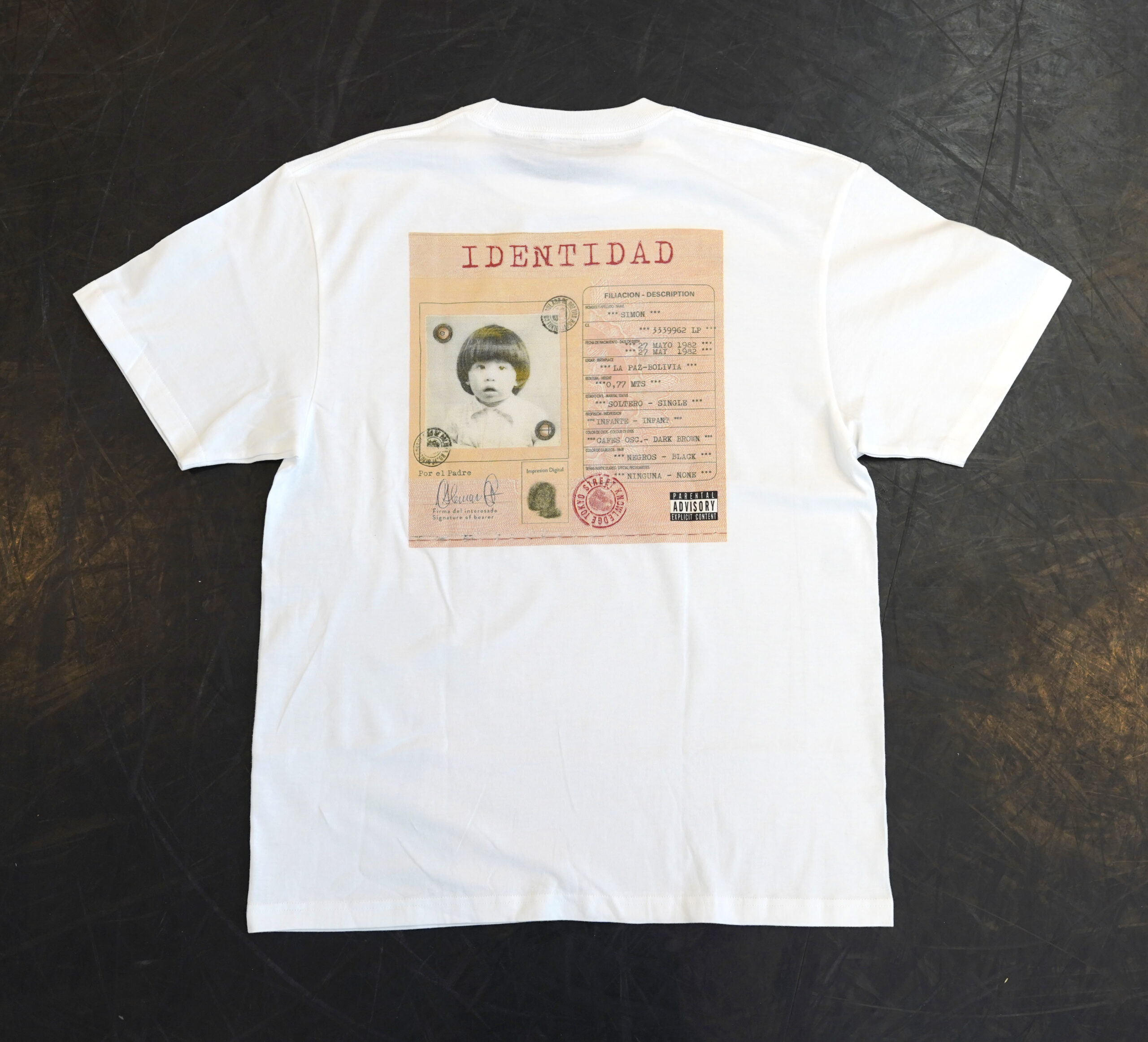 SIMONのニューアルバム『IDENTIDAD』を落とし込んだ公式Tシャツ。 フロントはワンポイントで、日常に溶け込むミニマルな仕上がり。 バックにはアルバムの世界観を象徴するグラフィックを配置。